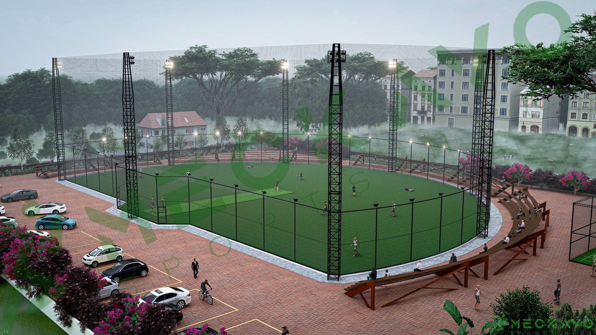 Build a championship-standard Box Cricket facility with MECKAVO's comprehensive turf construction system, engineered for spaces ranging from 6,000 to 16,000 square feet. Our complete package combines international-grade specifications with proven durability, ensuring optimal playing conditions year-round. **Complete System Includes:** Premium artificial turf engineered for weather resistance and extended lifespan, engineered sub-base infrastructure ensuring superior drainage and structural integrity, professional-grade boundary fencing with integrated safety netting, high-performance LED flood lighting systems for extended playing hours, regulation goalposts and essential accessories, and full-service installation by MECKAVO's certified technical team. **Designed For:** Professional cricket academies seeking competitive-standard facilities, established sports clubs and educational institutions, community recreation centers, and commercial venue operators requiring premium turf solutions. **What You Provide:** Heavy machinery (JCB, roller, aggregates) sourced locally for cost efficiency, workforce logistics including accommodation and meals, on-site utilities (water and electricity connections), secure material storage space, and accessible ground clearance for equipment deployment and installation. MECKAVO transforms raw space into a professional-grade sports venue that elevates player performance, attracts competitive teams, and builds community engagement. Our expertise ensures your facility meets international standards while maximizing long-term value and playability.